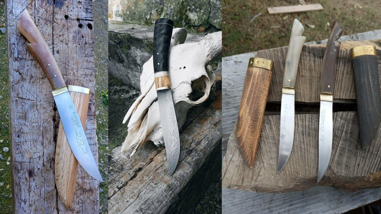 Ως υλικά χρησιμοποιεί ανακυκλωμένο ατσάλι, ατσάλι του εμπορίου, κέρατο γίδας, τράγου και κριαριού και μοσχαρίσιο κόκκαλο, ενώ τις θήκες των μαχαιριών τις φτιάχνει από ξύλα της σκοπελίτικης φύσης. Επισκευάζει, επίσης, παλιά μαχαίρια.