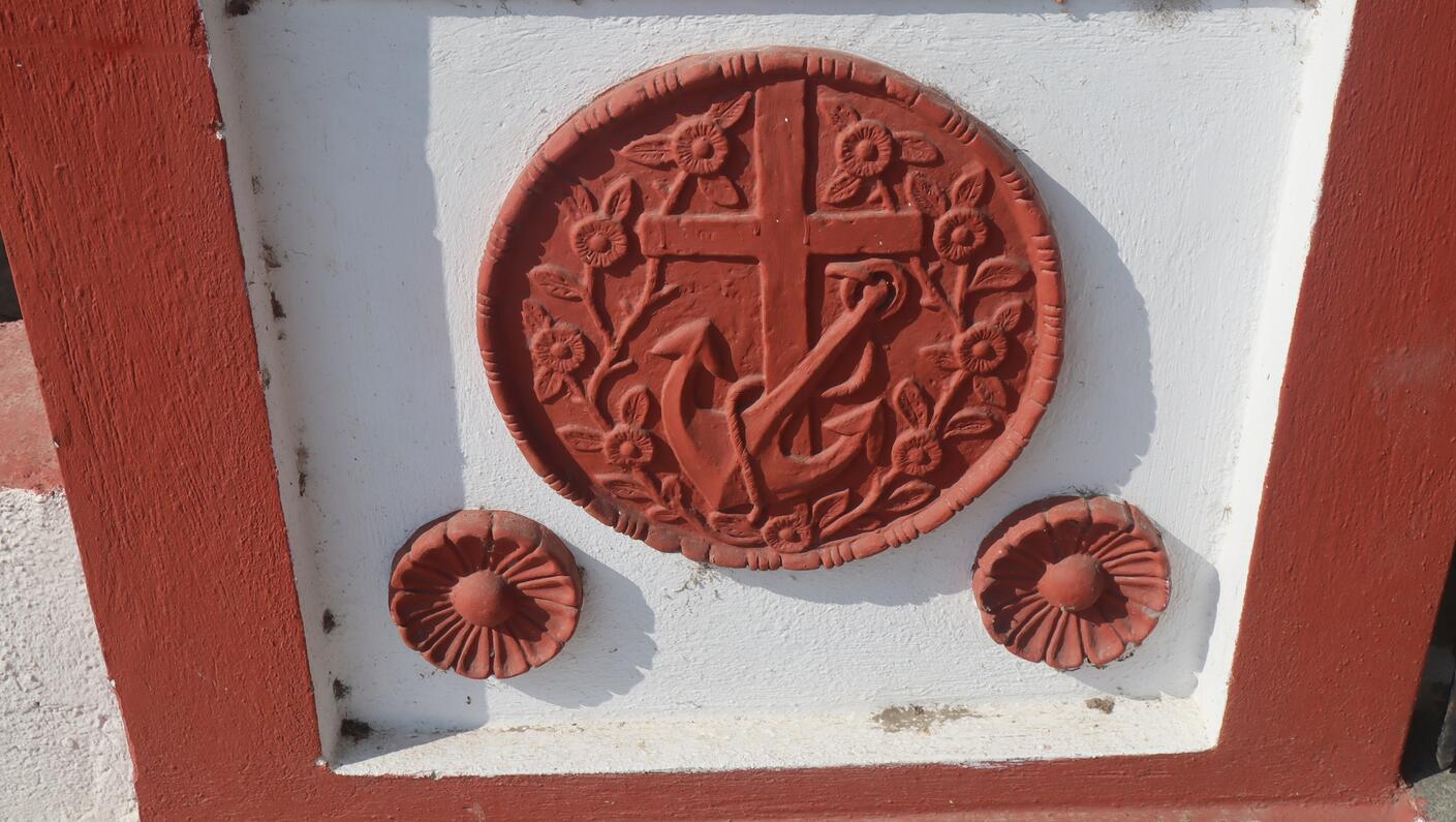 Τα κεραμικά με τα οποία είναι διακοσμημένο το εικονοστάσι, αποτελούν έργα της γνωστής Σκοπελίτικης οικογένειας αγγειοπλαστών Ροδίου.