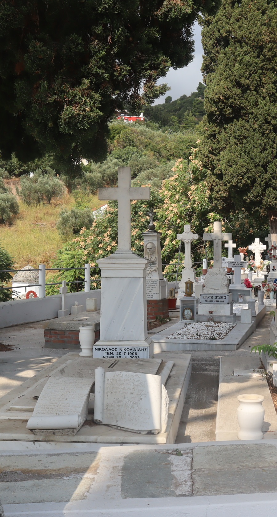 Το κοιμητήριο της Σκοπέλου ξεχωρίζει για τα περίτεχνα μνημεία και τις καλαίσθητες προτομές του, που αποτελούν ζωντανές μαρτυρίες της ιστορίας και της τέχνης του νησιού.