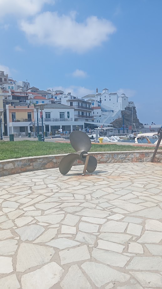 Την ίδια περίοδο, πλαισιώνοντας τον χώρο, τοποθετήθηκαν δύο άγκυρες τύπου Αγγλικού Ναυαρχείου, οι οποίες εντοπίστηκαν στη λιμενολεκάνη της Σκοπέλου και ανήκαν σε σκοπελίτικα ιστιοφόρα που συμμετείχαν στην Ελληνική Επανάσταση του 1821. Παράλληλα, προστέθηκαν και δύο κανόνια της ίδιας εποχής, που αποτελούσαν τμήμα της αμυντικής οχύρωσης της παραλιακής ζώνης του νησιού.