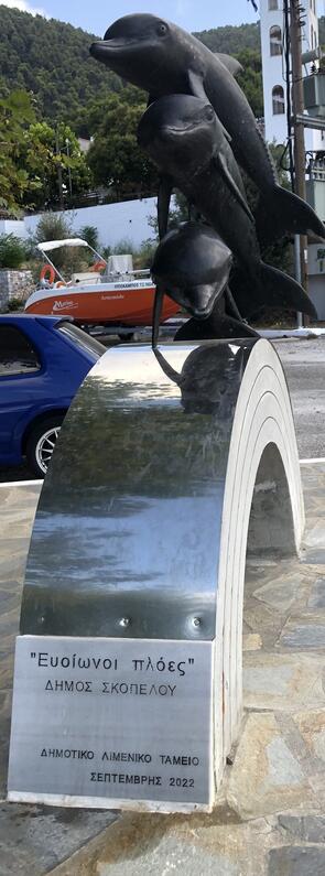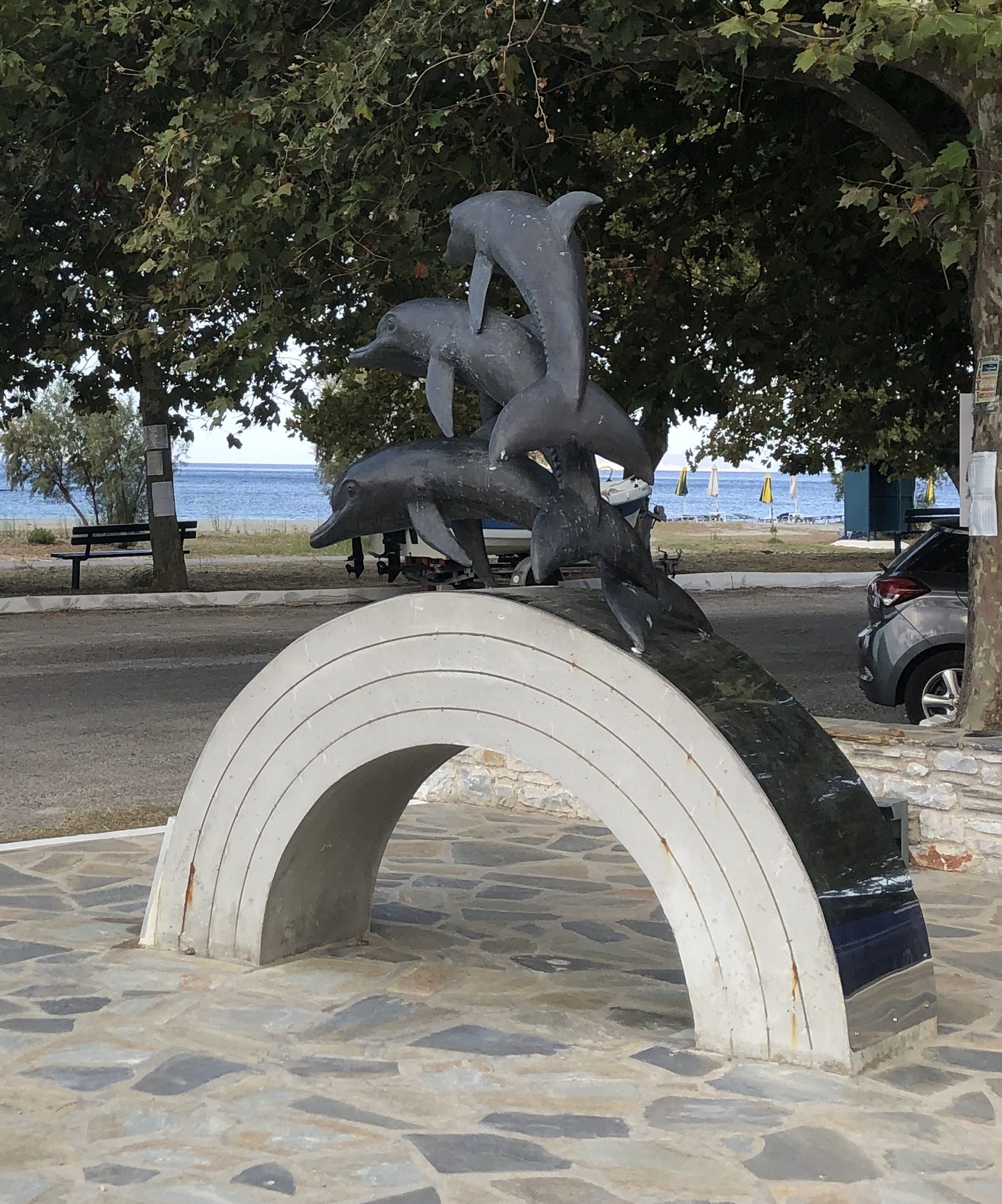 Στο τουριστικό αγκυροβόλιο του Νέου Κλήματος δεσπόζει το εντυπωσιακό ορειχάλκινο γλυπτό με θέμα τα Δελφίνια.