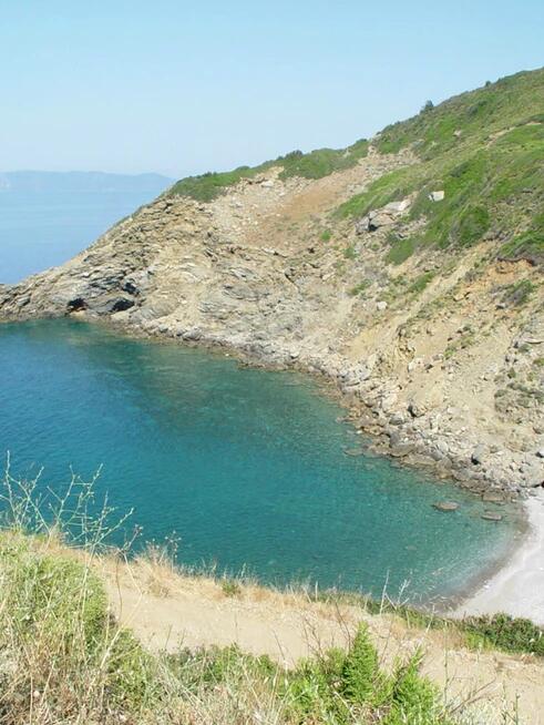 Αμμώδης παραλία, στην αγκαλιά ενός βαθύ και στενού κόλπου με πεντακάθαρα νερά. Ο Βαθιάς είναι μία ήσυχη και γραφική παραλία που δεν συγκεντρώνει πολύ κόσμο.