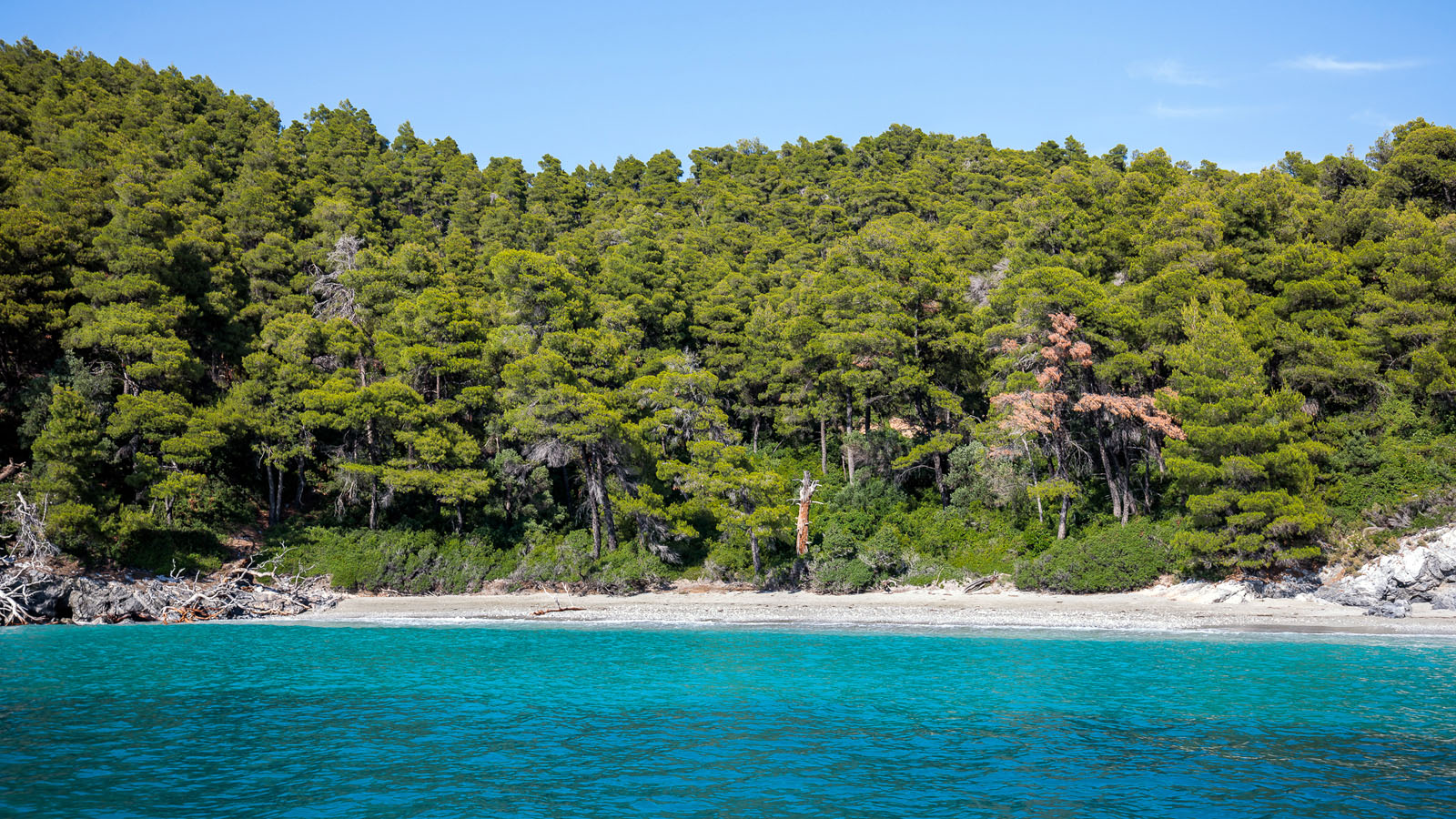 Εξωτικά νερά και καταπράσινα πεύκα που σχεδόν βουτούν στη θάλασσα. Δεν είναι τυχαίο που η ονειρεμένη Φτελιά (Νεράκι) προσελκύει μηχανοκίνητα σκάφη και ιστιοπλοϊκά, πολλά από τα οποία ανήκουν σε μέλη διεθνούς jet set.